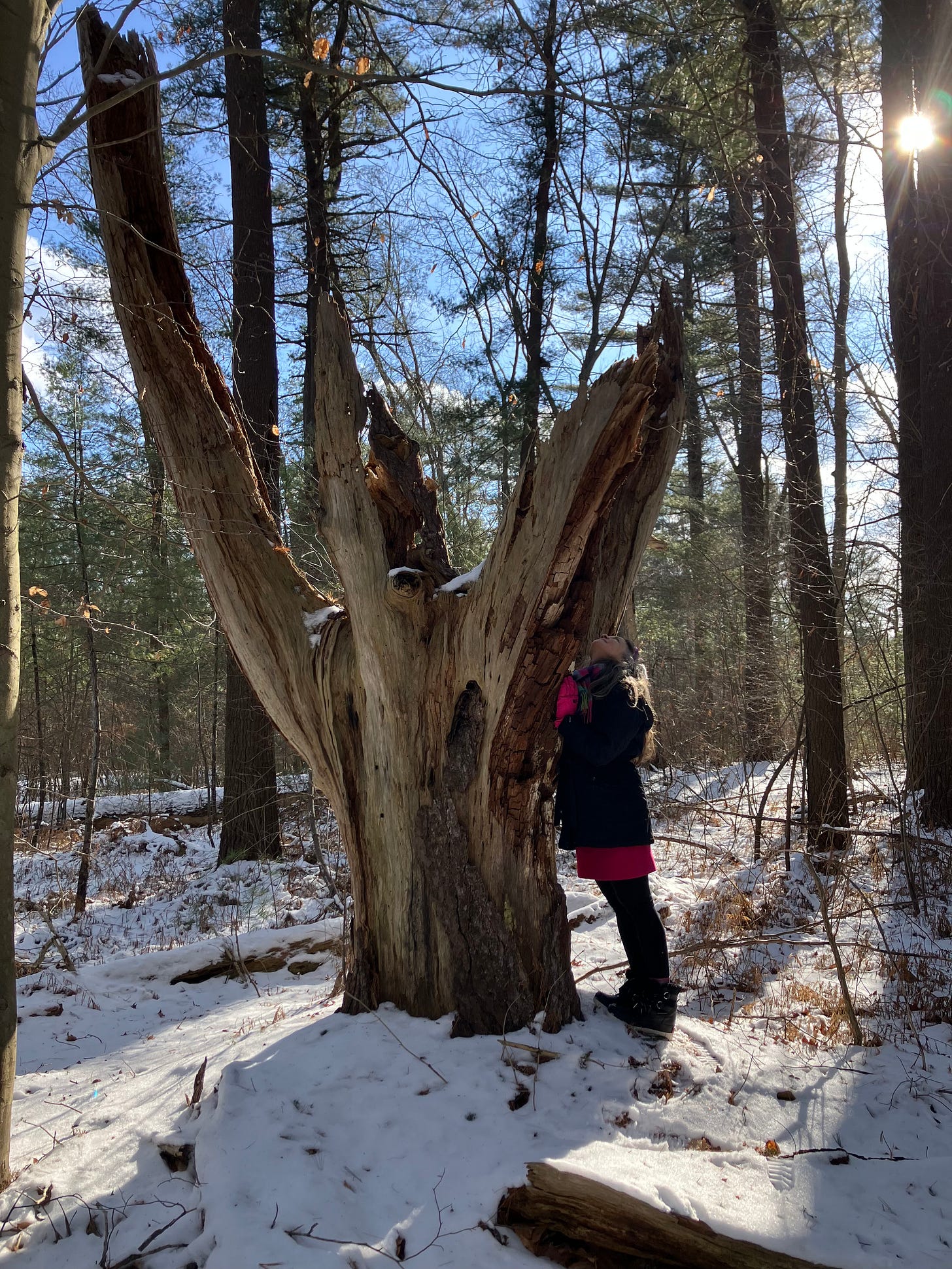 Maybe you can sort of see it: the snow is clinging to the branches and it's just perfection of New England's coldness and crispness